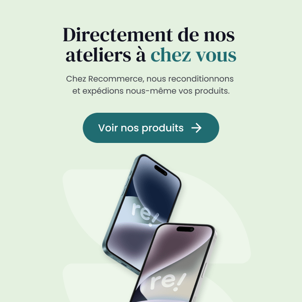 Leader français du reconditionnement, Recommerce® vous propose des smartphones fiables, reconditionnés par des experts. Chaque appareil bénéficie d'une garantie de deux ans, de quoi rester serein. Les produits sont issus de rachats en Europe auprès de particuliers et entreprises, dont nous rachetons les appareils usagés. Depuis 2009, Recommerce redonne du pouvoir d'achat à des millions de consommateurs, renforçant une boucle locale et circulaire.