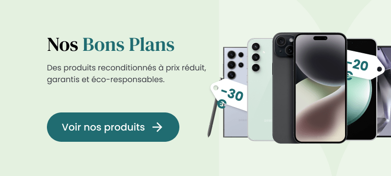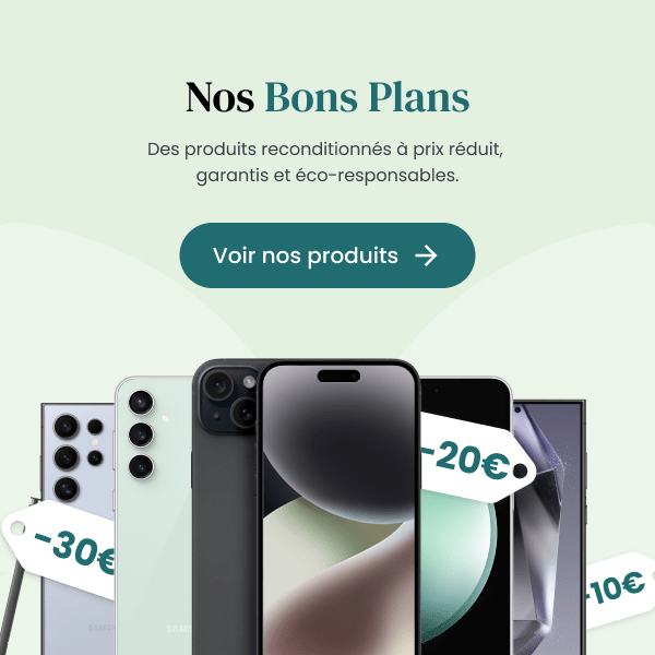 Acheter du reconditionné contribue à préserver l'environnement en évitant la pollution numérique. Reconditionner un téléphone utilise beaucoup moins de ressources que fabriquer un appareil neuf. Au-delà de l'aspect écologique, c'est un moyen d'acquérir un téléphone pas cher jusqu'à -70% par rapport au neuf. De bonnes raisons de réaliser un achat responsable, non ?